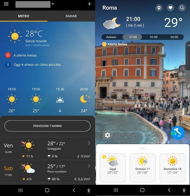 Un’altra ottima app è iLMeteo, che offre tantissime funzionalità per tenere sotto controllo la temperatura anche per i giorni futuri in modo molto preciso. Si tratta appunto di un’applicazione meteorologica che permette di avere a portata di mano il meteo per ogni giorno della settimana. Quest’app è disponibile su Android (anche su store alternativi) e iOS/iPadOS.