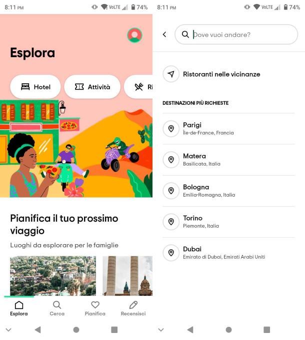 - Yelp (Android/iOS/iPadOS) — seppur meno conosciuta delle app precedentemente illustrate, Yelp è un servizio americano molto valido, semplice e intuitivo, con il quale potrai prenotare un ristorante, trovare un ottimo caffè o persino farti consegnare il pranzo o la cena a domicilio.