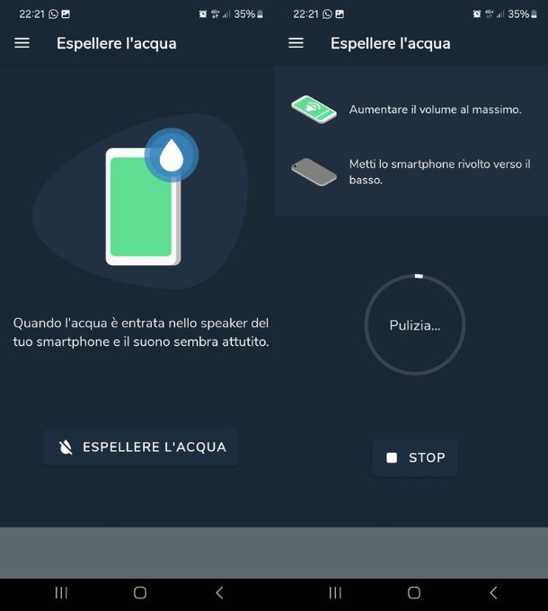 - Super Speaker Cleaner (Android) — altra app che offre un'interfaccia minimalista con appena un paio di modalità e delle semplici procedure per rimuovere sporco e acqua dal telefono.