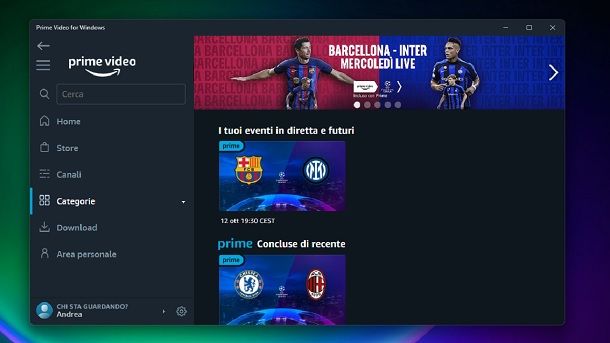 Un’app che invece potrebbe interessarti scaricare su PC, in quanto disponibile sia sul Microsoft Store (Windows) che sul Mac App Store (potrebbe interessarti consultare la mia guida su come installare applicazioni su PC), è quella di Amazon Prime Video. Mediante quest’ultima, infatti, come spiegato nel capitolo legato ad Android, puoi accedere al menu Categorie > Sport, così da venire a conoscenza delle prossime partite e dei match conclusi di recente, nonché dei contenuti sportivi disponibili sulla piattaforma.