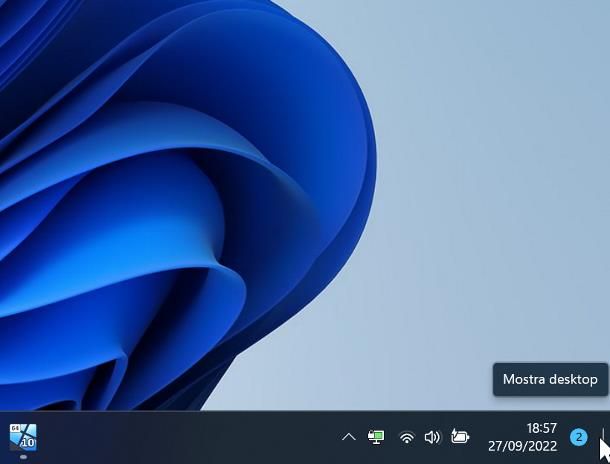 Per ridurre a icona tutte le finestre attive sul desktop, posiziona il cursore del mouse nell'angolo inferiore destro dello schermo e clicca su quella parte: nel giro di pochissimi istanti, verrà mostrato il contenuto del desktop e tutti i programmi attivi verranno ridotti a icona, sulla barra delle applicazioni.