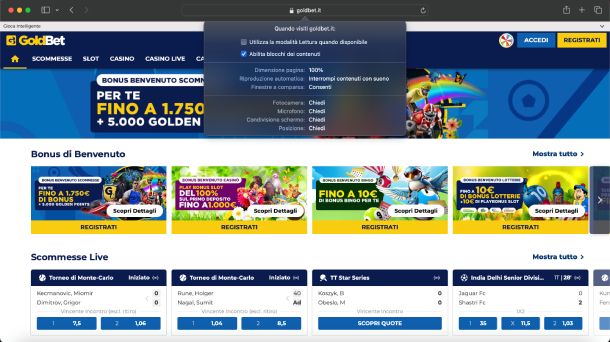 Per quanto riguarda Safari, purtroppo non è possibile abilitare i pop—up solo per Goldbet, quindi bisognerà disattivare l'opzione dedicata per tutti i siti visitati.