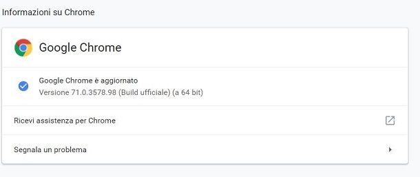 In caso di necessità, però, si può forzare la ricerca di nuovi aggiornamenti, avviando il navigatore, cliccando sul tasto (⋮) in alto a destra nella finestra dello stesso, espandendo il menu Guida e scegliendo la voce Informazioni su Google Chrome in esso presente. Se è disponibile un aggiornamento, basta fare clic sul tasto Riavvia, per riavviare Google Chrome e applicarlo.