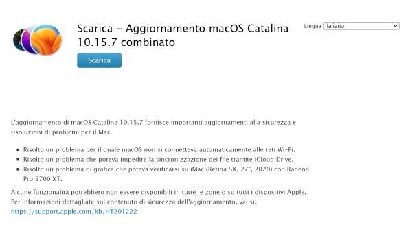 Se gli aggiornamenti di sistema/del Mac App Store non funzionano, oppure se sei interessato a effettuare un’installazione pulita di macOS (pur senza perdere alcun dato), puoi affidarti ai cosiddetti Combo Update, o Aggiornamenti Combinati. Qualora non ne avessi mai sentito parlare, i Combo Update sono dei pacchetti di aggiornamento per macOS che comprendono l’intero sistema operativo. I Combo Update vanno scaricati dal sito Internet di Apple e installati manualmente, non sono disponibili sul Mac App Store e sono decisamente ingombranti in termini di spazio.