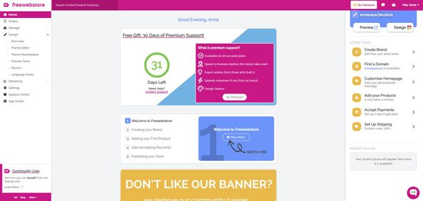Se desideri cambiare altre impostazioni e modificare ulteriormente il tuo ecommerce, puoi sempre utilizzare la barra a sinistra sulla dashboard e procedere come più ti aggrada.