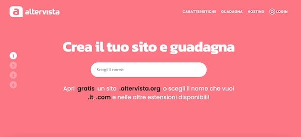 Per creare un sito con WordPress su Altervista, tutto quello che devi fare è collegarti alla pagina principale del servizio, inserire il nome da mostrare nell’URL del tuo sito Web nel campo Scegli il nome e premere il tasto Invio della tastiera, per verificarne la disponibilità.