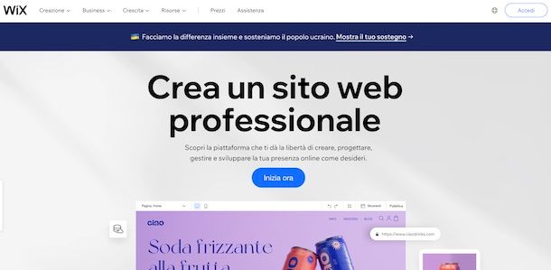 Wix è un’altra valida soluzione che puoi prendere in considerazione per aprire un sito Internet a costo zero. Il piano gratuito offre 500 MB di spazio d’archiviazione e un dominio di terzo livello (es. nomeutente.wixsite.com), con la possibilità di attivare uno dei piani in abbonamento (a partire da 5,50 euro mese) in qualsiasi momento.