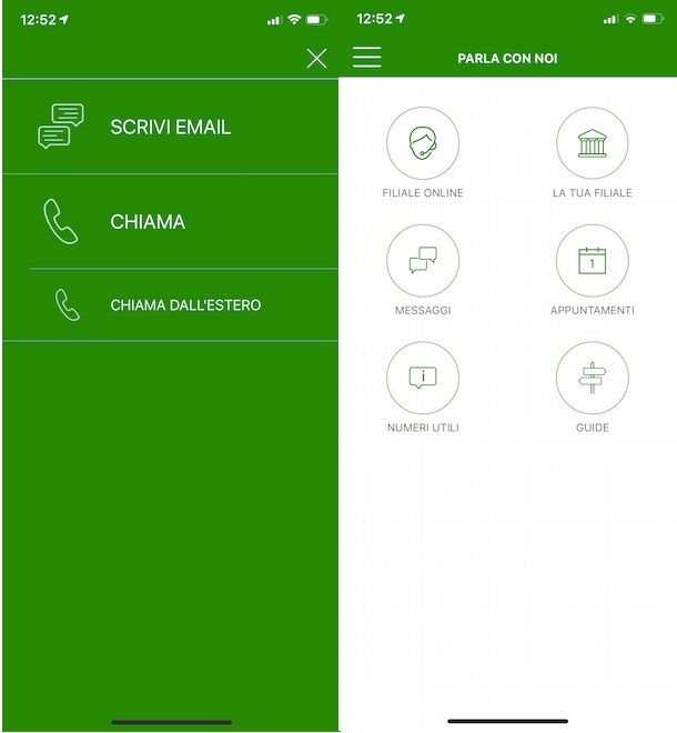 La soluzione più semplice per farlo, è avviare l’app della banca e muovere velocemente il tuo smartphone per aprire automaticamente la schermata con le opzioni di contatto disponibili. Scegli, quindi, l’opzione di tuo interesse tra Chiama, Chiama dall’estero e Chat.