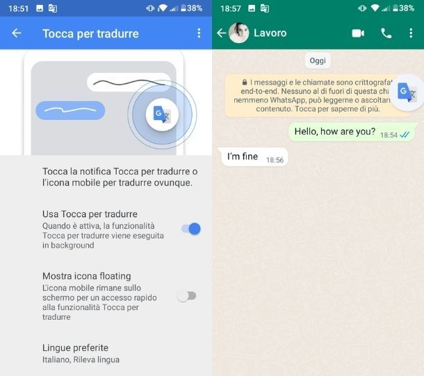 Ad esempio, tramite l’app di Google Traduttore disponibile per Android su Play Store, si può impostare una particolare funzione utile per tradurre i messaggi di WhatsApp senza uscire dall’app. Su iOS, invece, tale funzione non è al momento presente.
