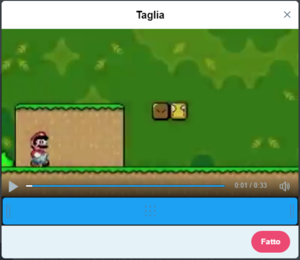 Fatto ciò, puoi tagliare il video per renderlo più breve in caso di necessità: è molto semplice, premi sull'icona ︙ che vedi nell'angolino in basso a destra sul video stesso, quindi muovi gli estremi della barra azzurra che vedi in basso per selezionare un inizio o una fine diversi da quelle impostate. Quando muovi gli estremi compare anche la durata della selezione, subito sopra la barra.