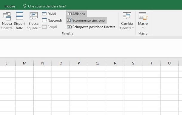 Di default è abilitato anche lo Scorrimento sincrono: se si scorre un foglio elettronico, automaticamente la stessa operazione verrà eseguita sull’altro foglio affiancato, in modo tale che tu possa visualizzare lo stesso intervallo di celle in entrambe le cartelle di lavoro. Più semplice di così, dico bene?