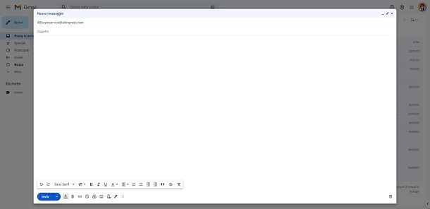Inviare un'email è uno dei pochi modi che si hanno attualmente per contattare la divisione italiana di AliExpress. Fare ciò è utile anche perché così facendo potrai mantenere nella tua casella di posta la tua conversazione con l'agente che ti aiuterà, così da poterla consultare più volte qualora tu ne avessi bisogno.