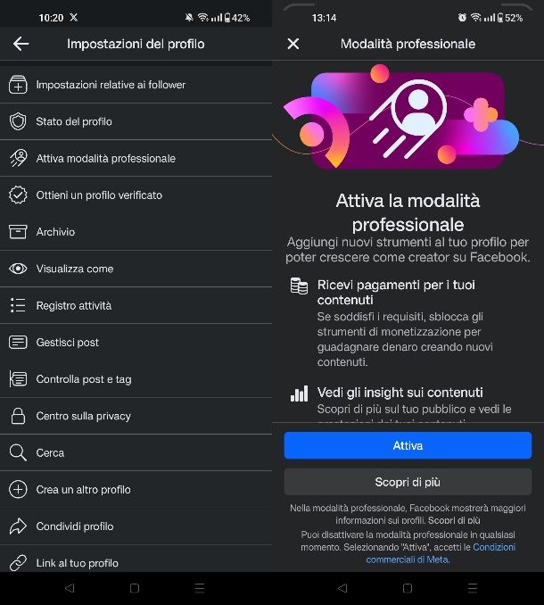 Fatto ciò, recati nella sezione del profilo e premi l'icona (…) in corrispondenza dello stesso. Adesso, nel menu visualizzato, fai tap sulla voce Attiva modalità professionale e premi il tasto Attiva.