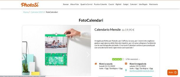 - PhotoSì — è un altro sito (anch'esso disponibile sotto forma di app per Android e iOS/iPadOS) che permette di stampare calendari fotografici in vari formati. Anche PhotoSì presenta prezzi decisamente accessibili: si parte da 12,90 euro per i calendari mensile quadrato e si arriva fino a 24,90 euro per i calendari fotografici più elaborati. Ti segnalo, inoltre, che ai nuovi iscritti viene solitamente offerto un buono acquisto di 10 euro sul primo ordine. Se vuoi saperne di più, dai un'occhiata al tutorial in cui spiego come stampare foto online.