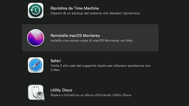 Per effettuare quest’operazione mediante un Mac con chip Apple Silicon (es. quelli della famiglia M1), ti basta accendere il Mac e tenere premuto il pulsante di accensione fino a quando non compaiono a schermo le opzioni di avvio, facendo poi clic prima sull’icona Opzioni e in seguito su Continua. In alternativa, se disponi di un Mac con processore Intel, riavvia il Mac e durante la fase di boot del sistema tieni premuta la combinazione di tasti cmd+r fino a quando non compare a schermo il logo di Apple.