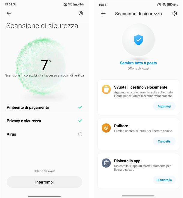 Infine, se hai uno smartphone Xiaomi ti basterà aprire l’app Sicurezza e toccare sulla voce Scansione di sicurezza. In automatico verrà effettuata la scansione dell’intero smartphone: qualora venissero riscontrati dei problemi (come la presente di virus) ti basterà toccare sul pulsante Correggi e attendere che il problema venga risolto in automatico.