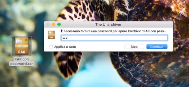 Una volta installato il programma in questione, non devi far altro che premere destro sul file RAR che desideri aprire, cliccare sulle voci Apri con > The Unarchiver e, infine, digitare la password che protegge il file RAR. Anche in questo caso il file verrà poi estratto in automatico nella medesima cartella in cui si trova l’archivio compresso. Semplice, vero?