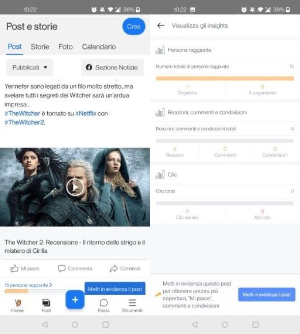 La dicitura [numero] clic sul post, invece, ti permette di sapere quante persone hanno effettivamente cliccato sul post, pur non fornendoti nome e cognome di questi ultimi.