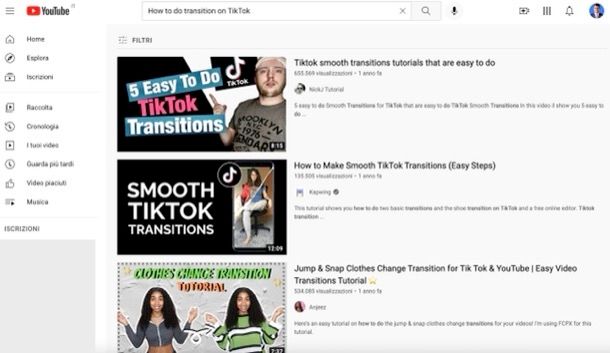 Esistono, inoltre, diversi effetti di transizione più complessi che sono applicabili ai video attraverso quest’ultimo metodo (come per esempio lo Swipe Transition o il Clothes Transition) e, per questo motivo, ti consiglio di cercare su YouTube i video tutorial degli utenti che mostrano come realizzarli, vista la complessità della cosa. Ti basta cercare qualcosa del tipo “come fare le transizioni su TikTok” oppure, per cercare i video in lingua inglese, “how to do transitions on TikTok”.