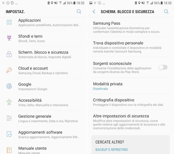 - Proteggere l’accesso al telefono – per quanto possa sembrare banale, una delle misure di sicurezza più efficaci per evitare che qualcuno possa hackerare lo smartphone è proteggere in maniera l’accesso al dispositivo. Questo significa utilizzare un PIN sicuro, una sequenza di sblocco complessa, lo sblocco mediante l’impronta digitale, tramite il riconoscimento facciale o, ancora, la scansione dell’iride. Per impostare un sistema di sblocco su Android, basta accedere alle impostazioni del dispositivo, selezionare la voce relativa al blocco schermo e scegliere l’opzione per aggiungere l’opzione di sblocco preferita.