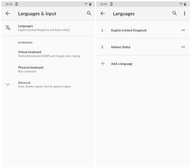 In caso contrario, tocca la voce Add a language, scegli l’italiano dalla lista proposta e sposta verso l’alto la lingua appena aggiunta, per impostarla come predefinita. Maggiori info qui.