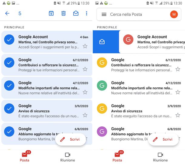 A configurazione avvenuta, potrai contrassegnare le tue email come già lette effettuando sopra di esse uno swipe verso destra o verso sinistra, in base a quanto configurato in precedenza.