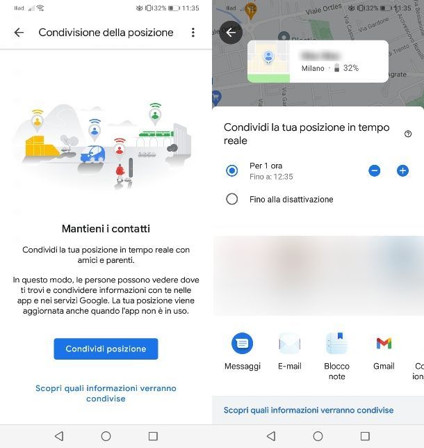 - Google Maps(Android/iOS/iPadOS) – l’app dedicata alle mappe di Google consente di condividere la propria posizione in tempo reale con amici e parenti, utilizzando l’account Google associato al proprio dispositivo. Se vuoi saperne di più puoi consultare il mio tutorial su come inviare la propria posizione con Google Maps.