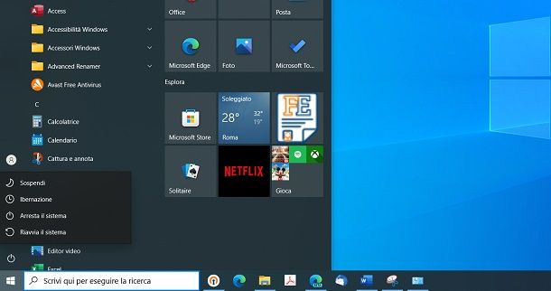L'ibernazione, invece, è una funzionalità che non è disponibile su tutti i PC e non è immediatamente accessibile di default. Inoltre, il PC viene spento, ma senza perdere il vantaggio offerto dalla sospensione, potendo dunque riprendere l'attività dal punto che hai lasciato. Ovviamente, puoi capire che la sessione di lavoro si riattiverà più lentamente rispetto alla sospensione.
