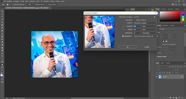 Prima di dare OK, devi apporre la spunta alla voce Ricampiona, per poi scegliere dal menu a tendina quale metodo di ricampionamento usare. Qui, siccome dipende dalla foto e dalle tue preferenze, non posso dirti a rescindere quale metodo usare. Ti consiglio di selezionarli tutti uno per uno e vedere quale anteprima preferisci. Quando sei pronto, premi il pulsante OK.