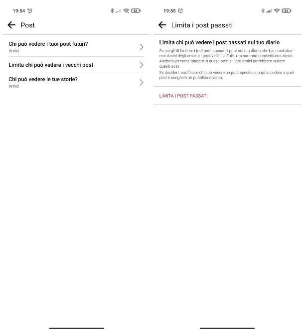 Inoltre, se lo desideri, puoi agire su tutte le foto pubblicate in passato e impostarle con privacy Amici in un solo colpo, andando a usare la funzione di limitazione dei vecchi post di Facebook. Tieni presente, però, che la modifica avrà effetto anche sugli aggiornamenti di stato che non contengono immagini.