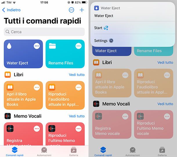 Fatto ciò, avvia l'app Comandi Rapidi e fai tap sulla scheda Water Eject. Alza il volume al massimo e avvia il comando premendo sulla voce Start, seleziona il livello di intensità (1, 2 o 3) ed ecco partire il suono che dovrebbe andare a sturare gli altoparlanti del dispositivo.