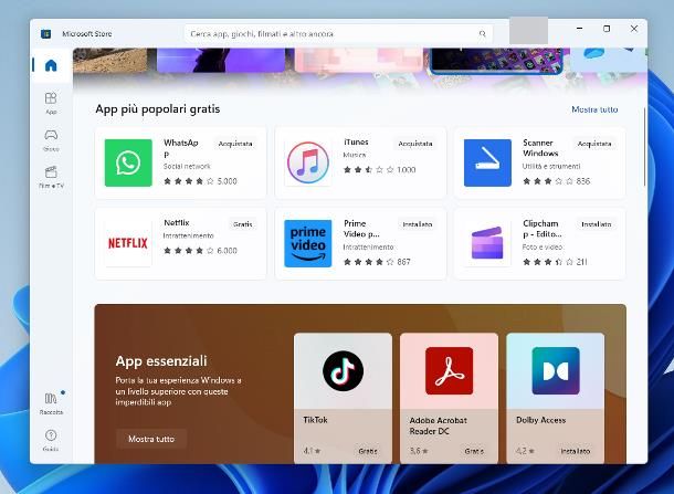 Fatto ciò, dai Invio e individua l’app di tuo interesse tra quelle elencate; per finire, fai clic sul suo nome, poi sul pulsante Ottieni e attendi pazientemente che la procedura di download venga portata a termine; per finire, avvia l’applicazione cliccando sul pulsante Apri, oppure usando l’icona che, nel frattempo, è stata aggiunta al menu Start di Windows.