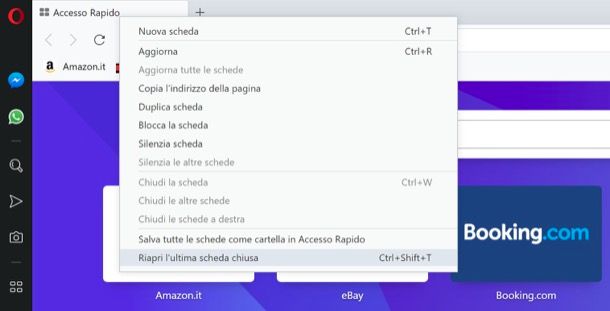 Qualora utilizzassi il browser Opera, sappi che puoi riaprire una pagina Web chiusa in maniera analoga a quanto ti ho mostrato nei capitoli precedenti.