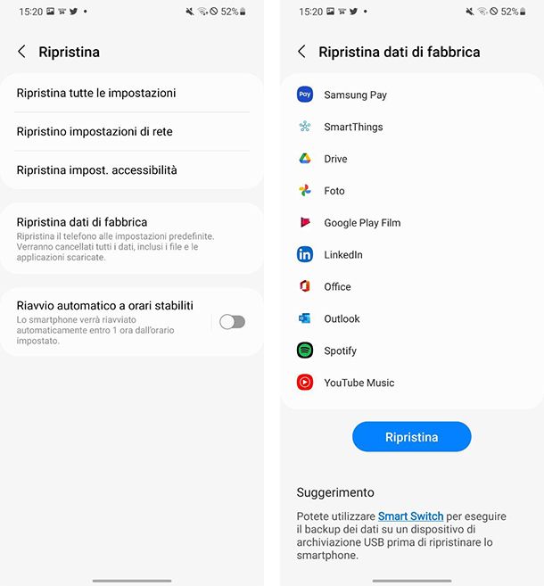 Come eseguire reset Samsung