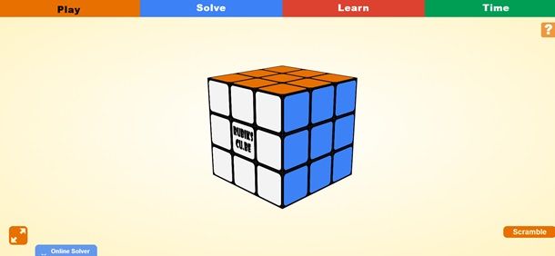 Un ottimo servizio facile e veloce che puoi utilizzare è Online Rubik's Cube - Simulator, un sito Internet che permette di risolvere il cubo di Rubik usando il mouse e mette a disposizione anche degli strumenti per imparare a risolverlo.