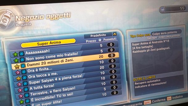 Un altro metodo per farmare Zeni consiste invece nel fare uso della Super Anima chiamata Dammi 20 milioni di Zeni, che si può acquistare a un certo punto dal Negozio medaglie PT (attenzione alla questione rotazione), presente sempre nell'hub principale. La descrizione è chiara: “Raddoppia gli Zeni guadagnati”, effettuando missioni parallele. In ogni caso, ti ho già spiegato nel capitolo iniziale della guida come si impostano questi elementi, mentre se hai dubbi in merito alle eventuali location di quanto citato in questa sede ti ricordo che puoi comunque effettuare delle ricerche specifiche su YouTube per avere delle indicazioni visive.