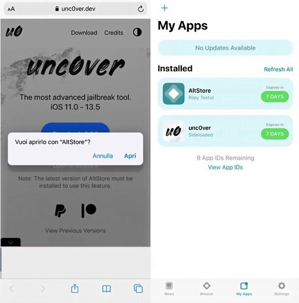Tieni presente che se spegni completamente l’iPhone, dovrai attivare nuovamente Cydia e i suoi tweak aprendo l’app unc0ver e premendo sul pulsante Jailbreak. Ti segnalo, inoltre, che se hai usato un ID Apple standard e non un ID Apple per sviluppatori (quello necessario a pubblicare le app su App Store e che costa 99$/anno) per installare AltStore, le app che hai installato in quest’ultimo scadranno ogni 7 giorni. Il software dovrebbe provare a rinnovarle in automatico (se il telefono è collegato a un computer su cui viene eseguito AltServer o è connesso alla medesima rete Wi-Fi e hai abilitato la sincronizzazione Wi-Fi in iTunes/Finder), ma probabilmente dovrai reinstallare unc0ver ogni settimana.