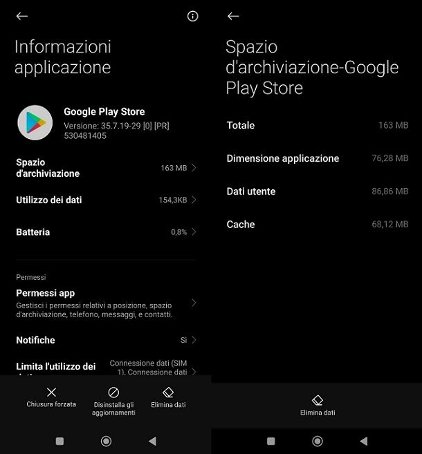 Per fare questo, ti potrebbe interessare raggiungere il percorso Impostazioni > App > Gestione app (potrebbe variare a seconda del modello Android a tua disposizione) e selezionare il riquadro del Google Play Store (di solito puoi anche cercare quest'ultimo mediante l'apposita barra di ricerca presente in alto). A questo punto, non ti resta che fare tap sulla voce Spazio d'archiviazione e premere sul pulsante Elimina dati.