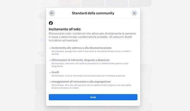 Fatto ciò, clicca sul pulsante Invia in modo da segnalare il profilo dell'utente in questione.