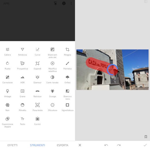 Se ti stai chiedendo come si fa a togliere le scritte dalle foto utilizzando il dispositivo mobile, allora ti consiglio di provare in prima battuta Snapseed, popolare app di fotoritocco gratuita sviluppata da Google. Puoi scaricarla da questa sezione del Play Store per Android (verifica anche su store alternativi), e da questa sezione dell'App Store per iPhone/iPad.