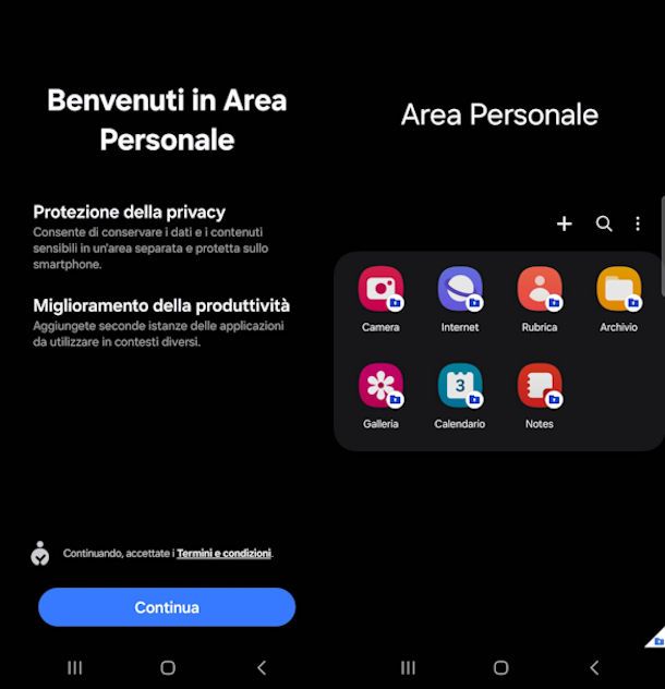 Adesso sei pronto a creare la tua Area Personale, puoi proseguire seguendo i passi indicati nella mia guida dedicata a come impostare l'Area Personale di Samsung, nella stessa troverai la procedura dettagliata per non sbagliare