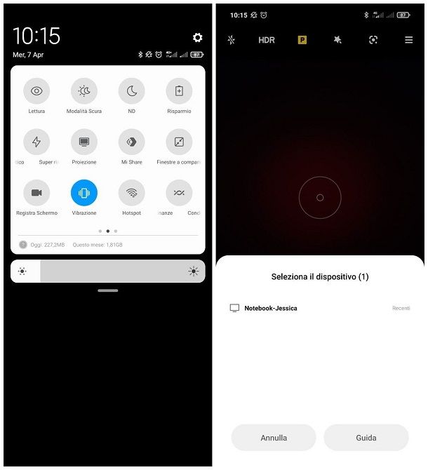 A questo punto, dal tuo dispositivo Android, apri l’area delle notifiche, fai tap sull’interruttore rapido Trasmetti e seleziona il nome del PC dall’elenco che compare a schermo. In pochi secondi il collegamento con il PC verrà stabilito e potrai vedere lo schermo del tuo smartphone sul PC.