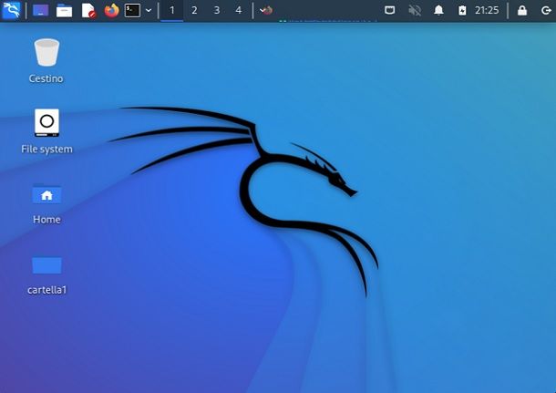 Ora che sei sul desktop di Kali Linux, crea una nuova cartella, facendo clic destro in un punto vuoto del desktop e selezionando la voce Crea cartella… del menu contestuale. Chiama poi la cartella come preferisci: io ho scelto cartella1.