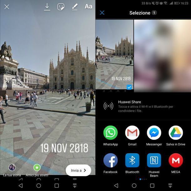 Raggiungi poi la Galleria del tuo device e al suo interno troverai anche la storia Instagram appena realizzata, con la possibilità di condividerla tramite altre app e servizi, tramite il tasto Condividi.