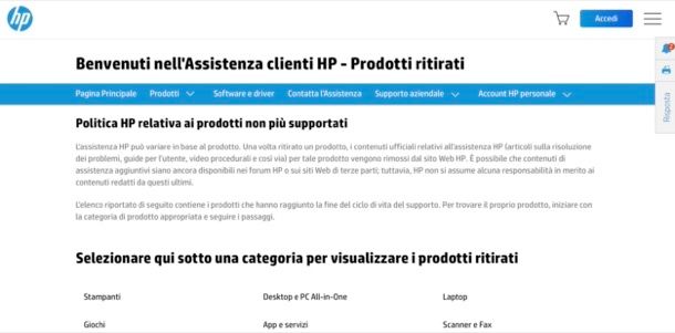 Prodotti HP non più supportati