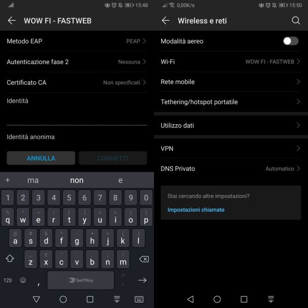 Se, invece, la rete Wi-Fi funziona ma non riesci a visualizzare correttamente i siti Internet, come già detto, potrebbe rivelarsi necessario cambiare o disattivare i DNS in uso: per approfondimenti in merito, ti rimando alla lettura della mia guida su come cambiare i DNS su Android.
