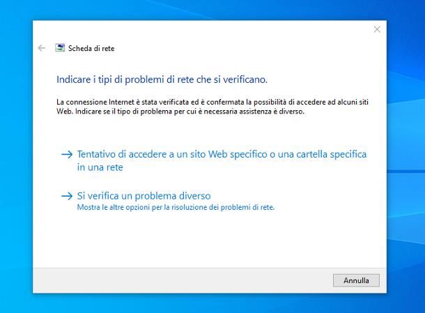 Se non riesci a collegarti a Internet e utilizzi un PC equipaggiato con Windows 10 o successivi (es. Windows 11), prova ad avviare lo strumento di diagnostica incluso nel sistema operativo Microsoft, utile per risolvere eventuali problemi di connessione riconducibili a un’errata configurazione del sistema operativo.