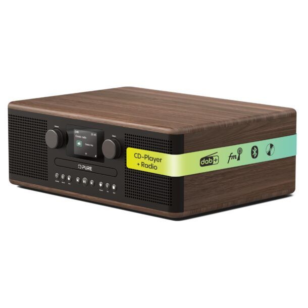 Il Pure Classic C-D6 si presenta come un sistema musicale all-in-one che combina eleganza e funzionalità in un design raffinato. Con il suo aspetto in legno di colore caffè nero/noce, questo dispositivo non è solo un piacere per le orecchie ma anche per gli occhi, integrandosi perfettamente in qualsiasi ambiente domestico.