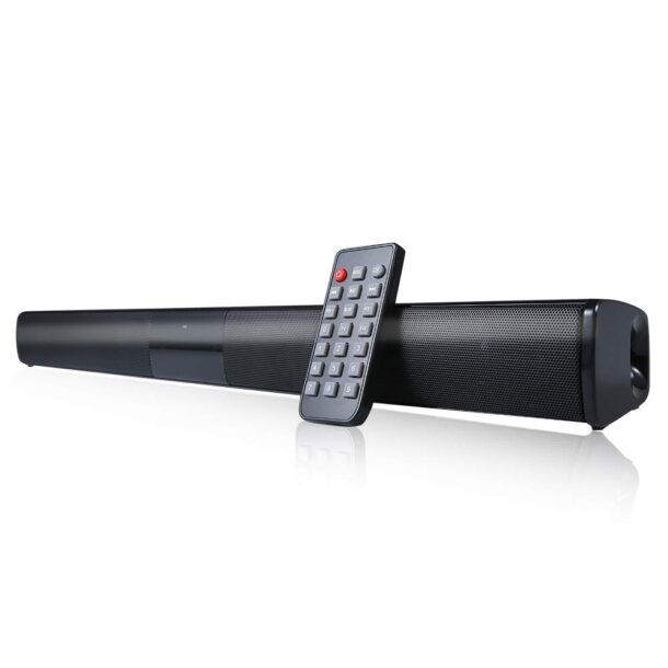 La docooler Soundbar Wireless BT 4.0 si presenta come una soluzione versatile e moderna per chi desidera migliorare l'esperienza audio del proprio sistema di intrattenimento domestico. Con un design compatto e discreto, questa soundbar è progettata per adattarsi facilmente a qualsiasi ambiente, sia che tu scelga di posizionarla su un tavolo, uno scaffale o montarla a parete.