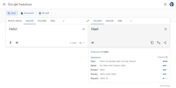 Seleziona, poi, la lingua in cui effettuare la traduzione mediante il menu a tendina annesso al box sulla destra (es. Italiano), digita la frase che vuoi tradurre nel box sulla sinistra e, come per “magia”, vedrai comparire la traduzione sulla destra. Se hai necessità, puoi anche scambiare velocemente la lingua d'origine e quella di destinazione cliccando sul pulsante con la doppia freccia che è posta al centro. Facendo clic sul bottone con l'altoparlante potrai invece ascoltare la pronuncia della traduzione.